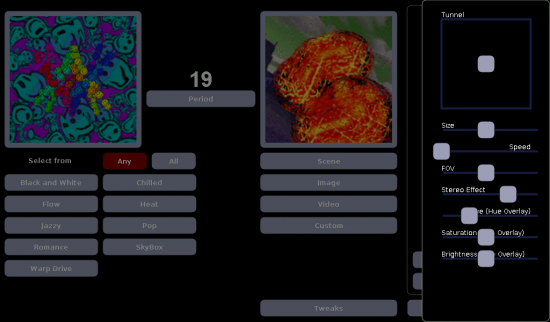 Hue/Saturation/Brightness - When the 'Hue' Overlay is applied ('Hue Flicker' overlays too - however for these the Hue tweak will not work) these change the Hue, Saturation and Brightness of the visuals.