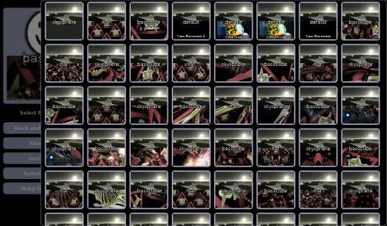 The Menus consist of two parts. The first half is a scrolling list of your images or videos. Tap on one of the images or videos to choose it. You will then see a selection of scenes which you may integrate your image or video into (the example below shows the screen set-up when selecting a scene to integrate a video into). Tapping on one of these combinations will select the finished scene.